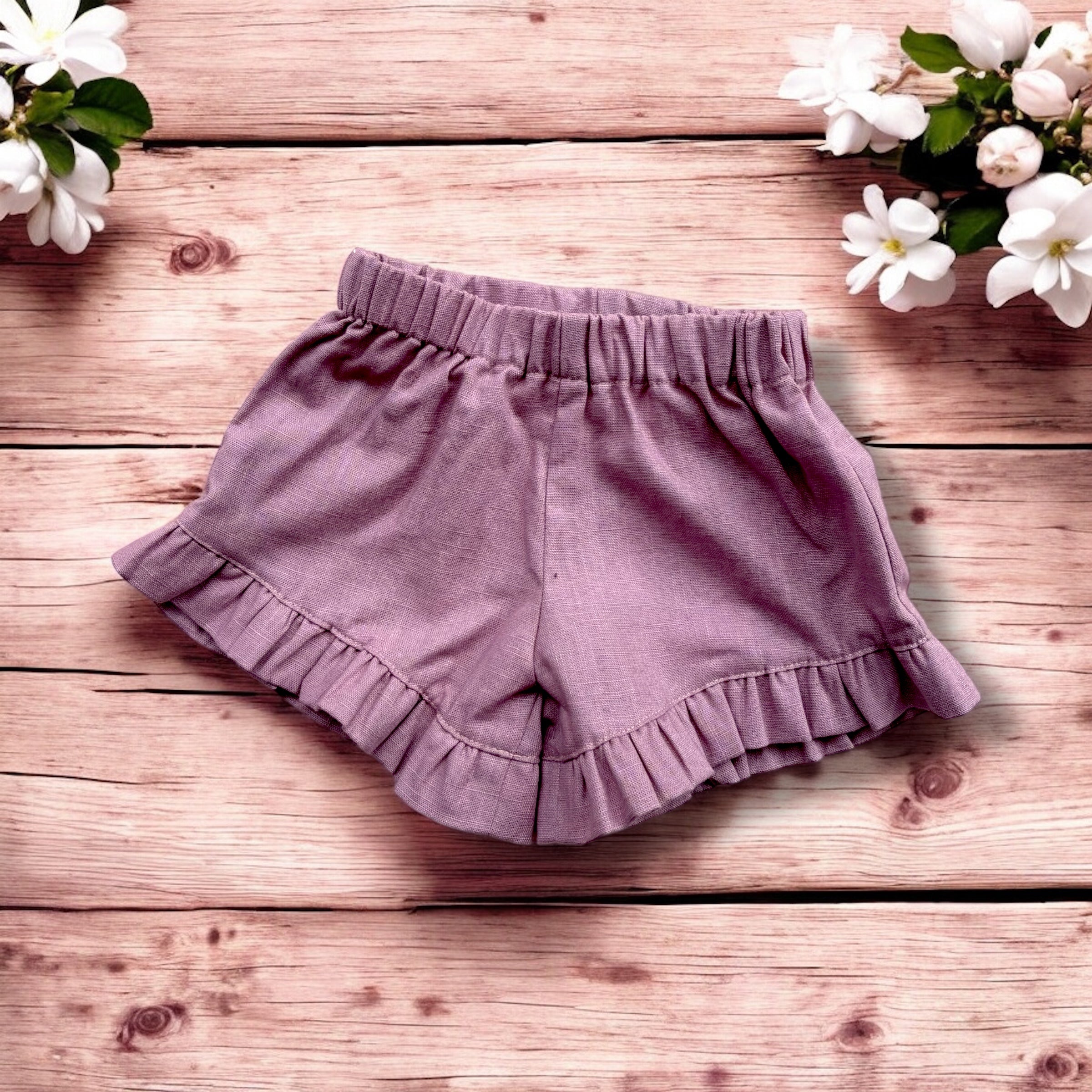 Shorts Rouche in lino Malva