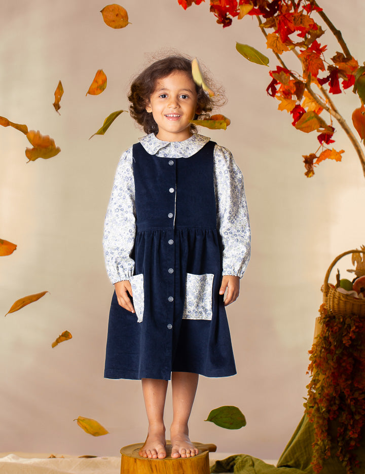 Salopette velluto blu e quadri