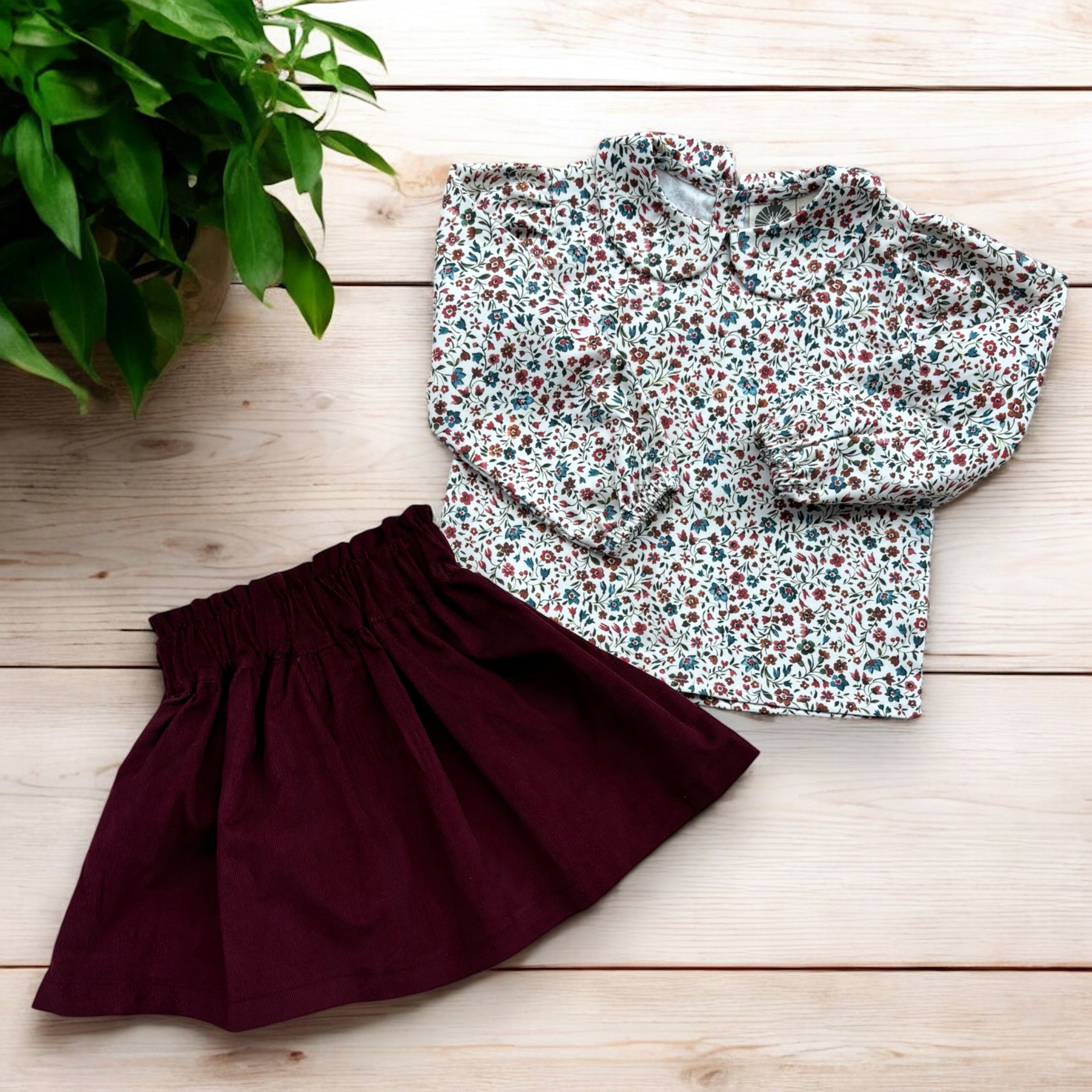 Gonnellina in velluto a costine prugna